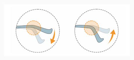 - Sliding down: Bend the arms slightly downward and inward where they curve behind your ears.